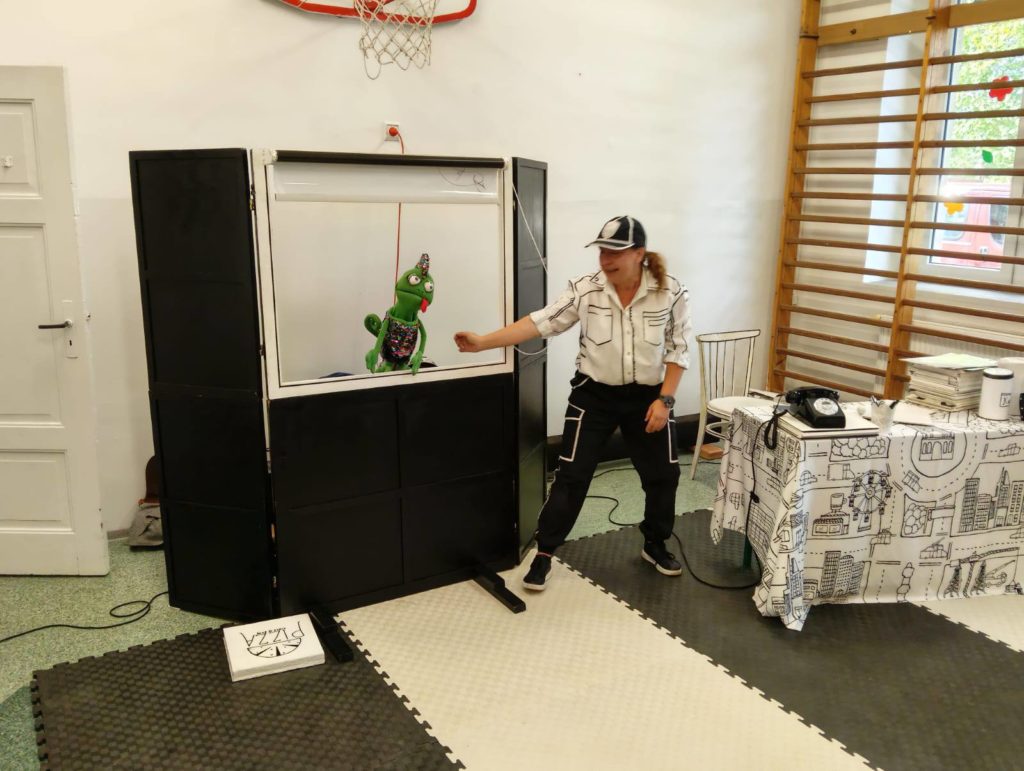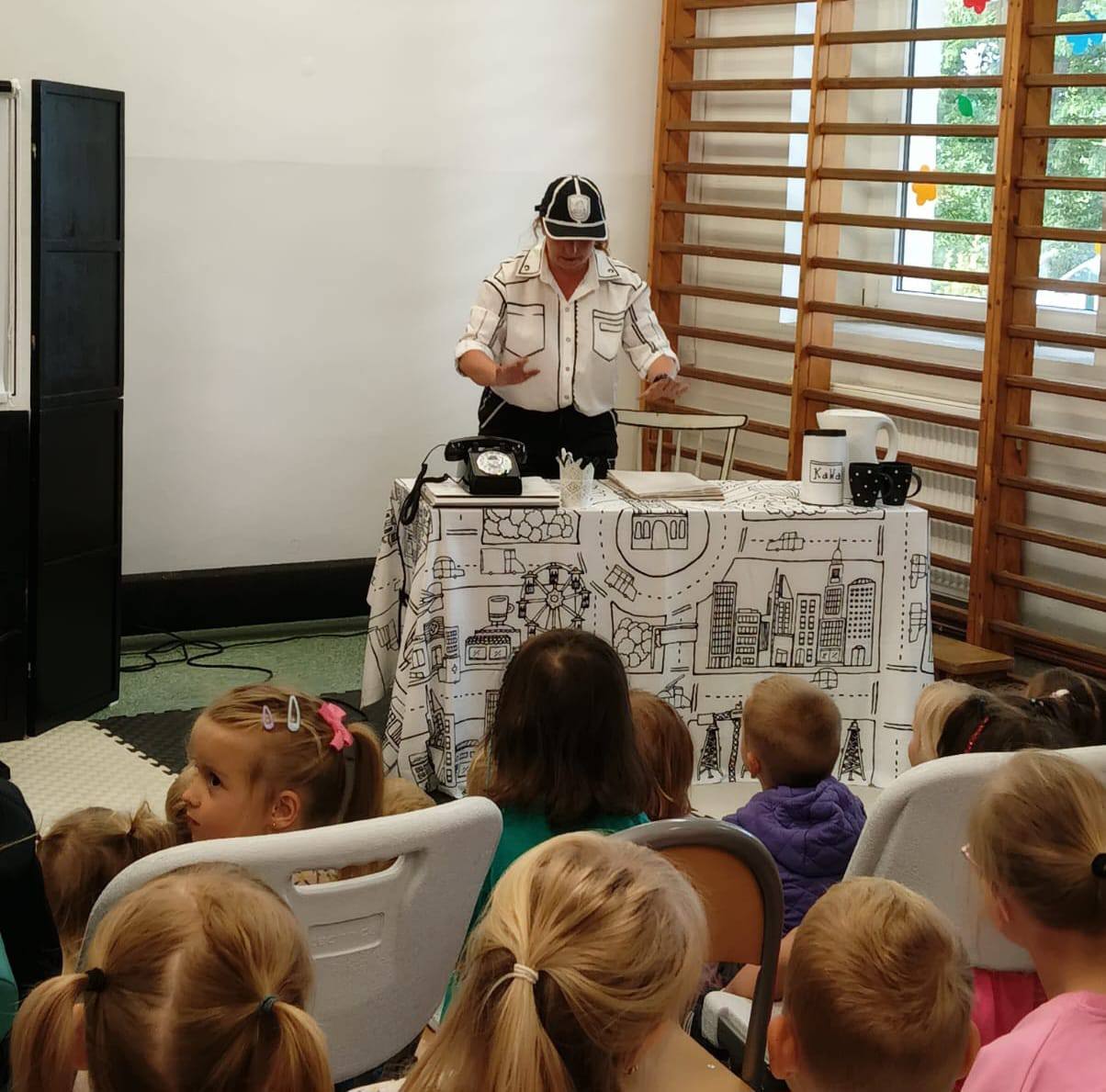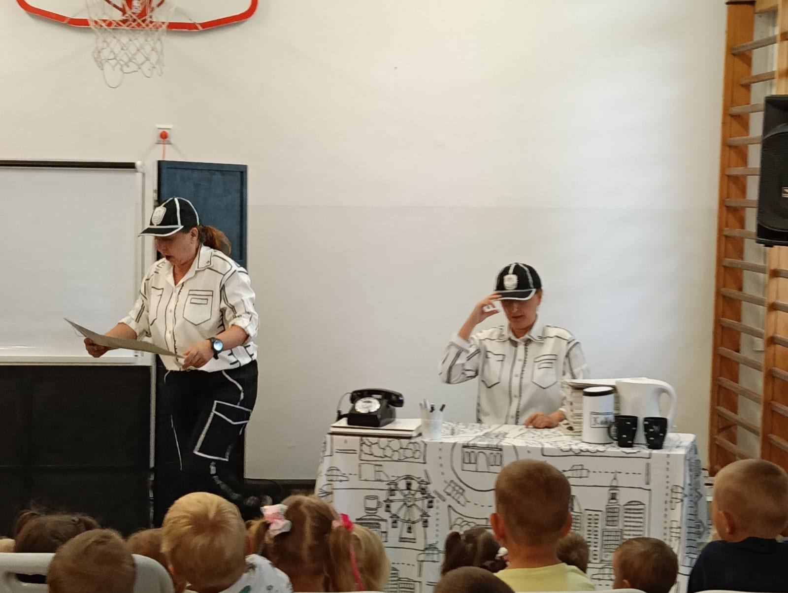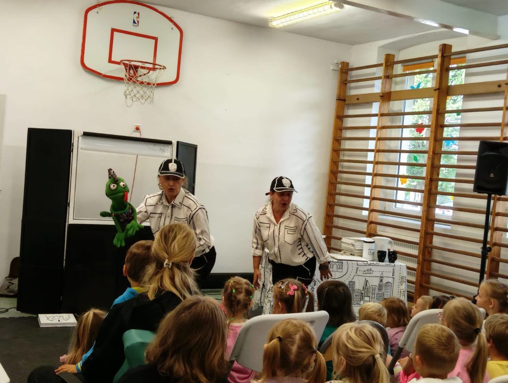 10 września przedszkolaki oraz uczniowie klas I- III obejrzeli spektakl edukacyjny ” Śledztwo w miejskiej dżungli”. Przedstawienie poruszało temat bezpieczeństwa ruchu drogowego jego najmłodszych uczestników. Dzięki atrakcyjnej formie i interakcjom dzieci poznały i utrwaliły pożądane zachowania w sytuacjach drogowych.