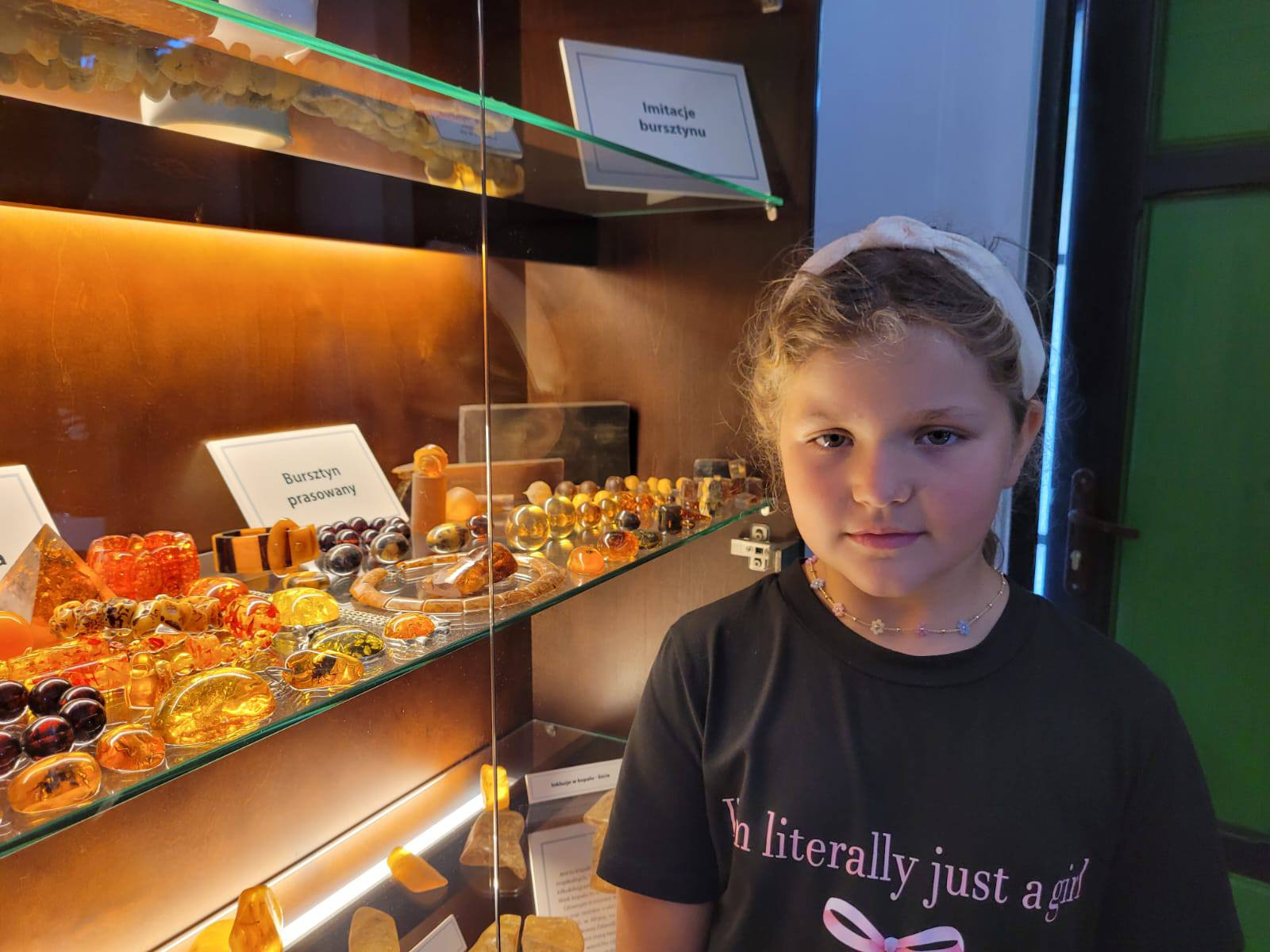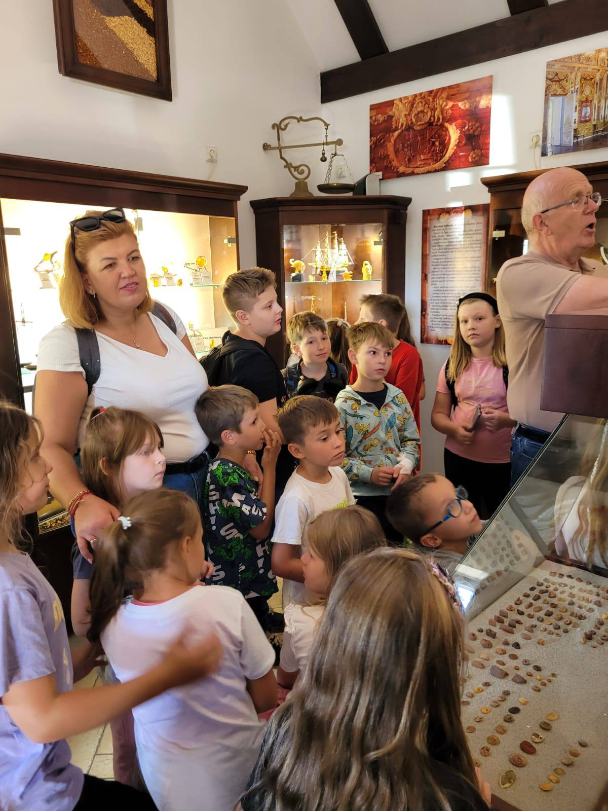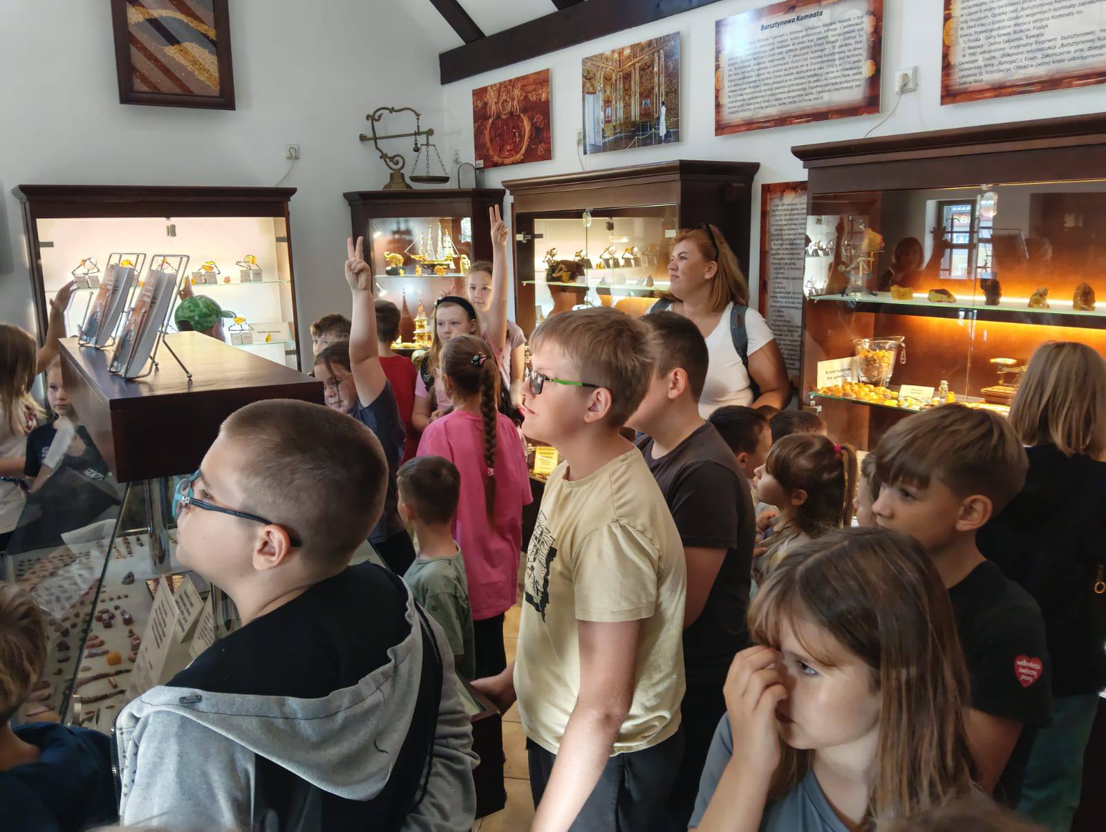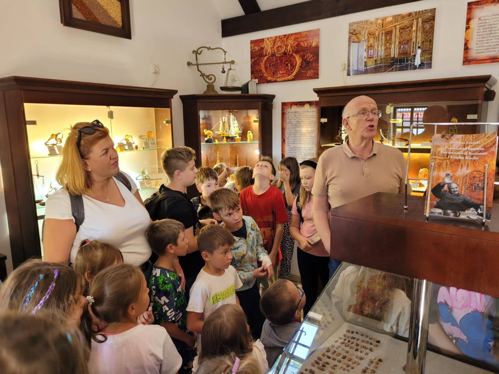 Następnie udaliśmy się do Bursztynowej Komnaty. Muzeum i Galerii Bursztynu w Stegnie. Właściciel muzeum Pan Wojciech Głodzik w niezwykle przystępny sposób przybliżył nam historię, sposób powstawania oraz możliwości bursztynu. Mieliśmy możliwość obejrzeć bogate zbiory wyrobów bursztynowych. Na pamiątkę każdy otrzymał kawałek bursztynu.