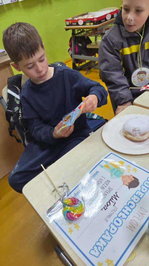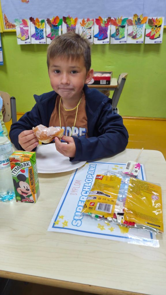 Na koniec każdy chłopiec otrzymał słodki upominek i został nagrodzony dyplomem super chłopaka.