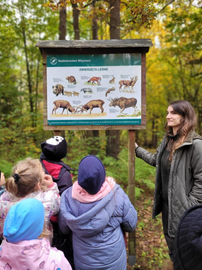17 października uczniowie klas 1-3 uczestniczyli w zajęciach edukacyjnych zorganizowanych przez edukatorow Nadleśnictwa Wipsowo. Tematem zajęć była fauna i flora leśna. Podczas spaceru po lesie dzieci miały okazję poznać gatunki roślin – ich nazwy, wygląd, właściwości i znaczenie dla ekosystemu. Nauczyły się również rozpoznawać szyszki sosny, świerku i jodły. Poznały także ptaki oraz zwierzęta zamieszkujące okolicę.