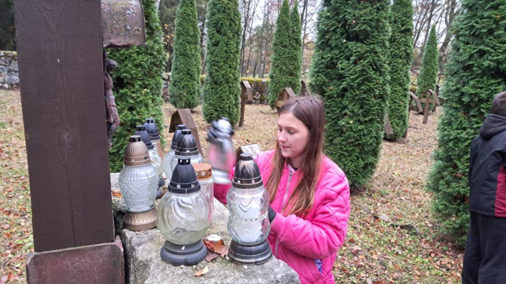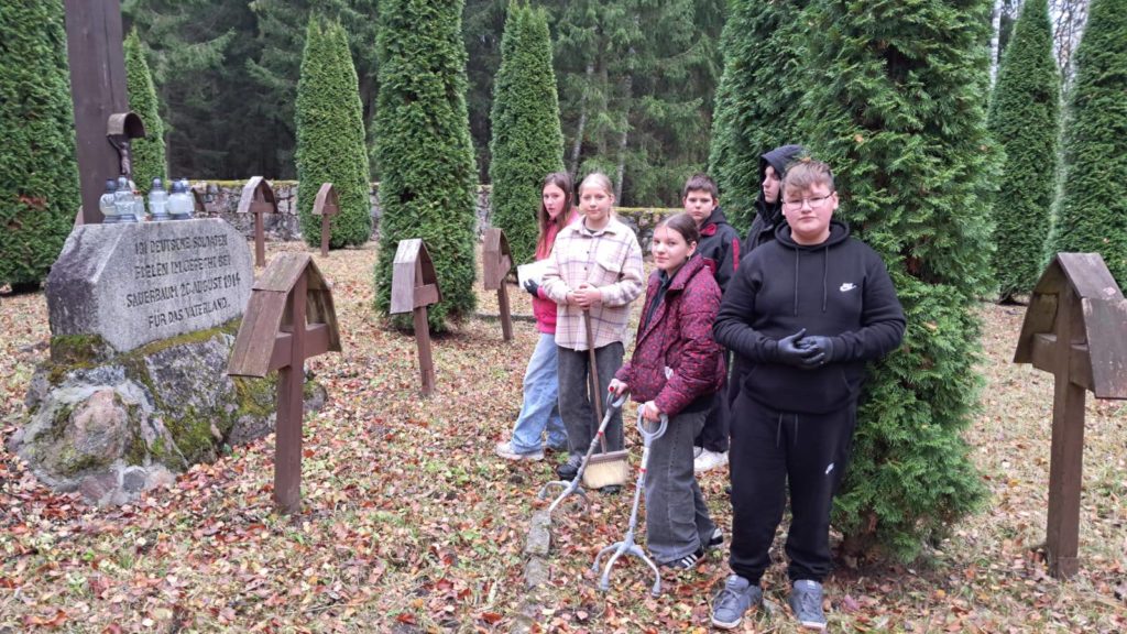 W przeddzień Wszystkich Świętych uczniowie klas VII i VIII odwiedzili cmentarz z I wojny światowej w Zerbuniu. Pochowanych jest tu 191 żołnierzy armii niemieckiej i 154 żołnierzy armii rosyjskiej, poległych podczas bitwy w dniu 26 sierpnia 1914 r. w rejonie wsi Biesowo, Zerbuń i Lutry.