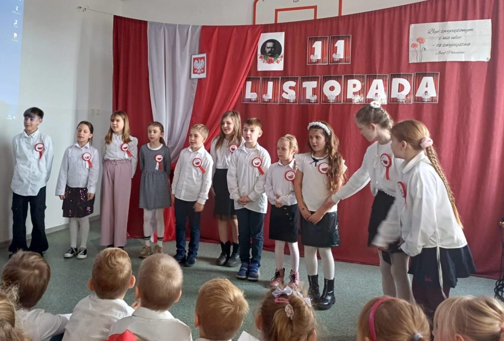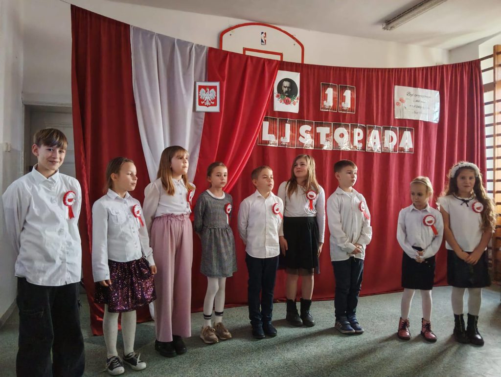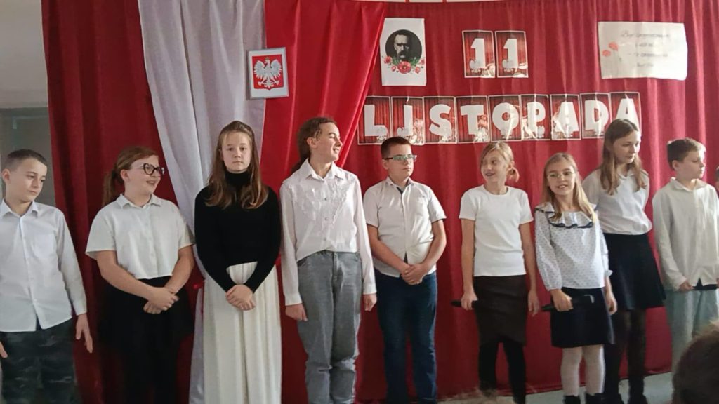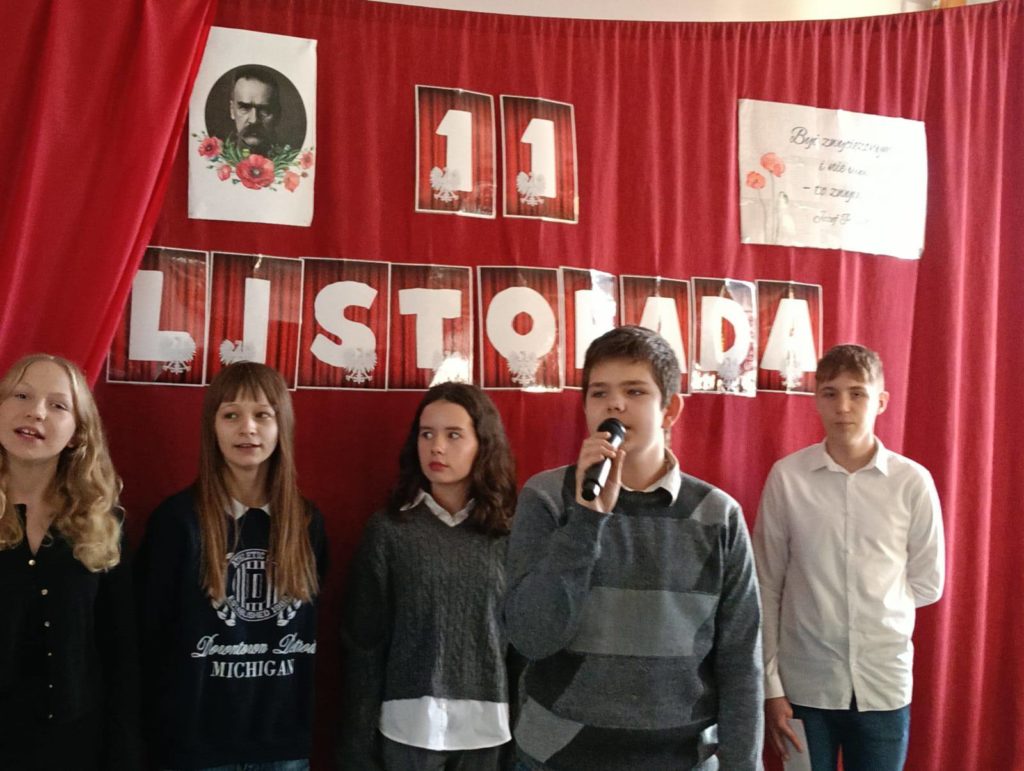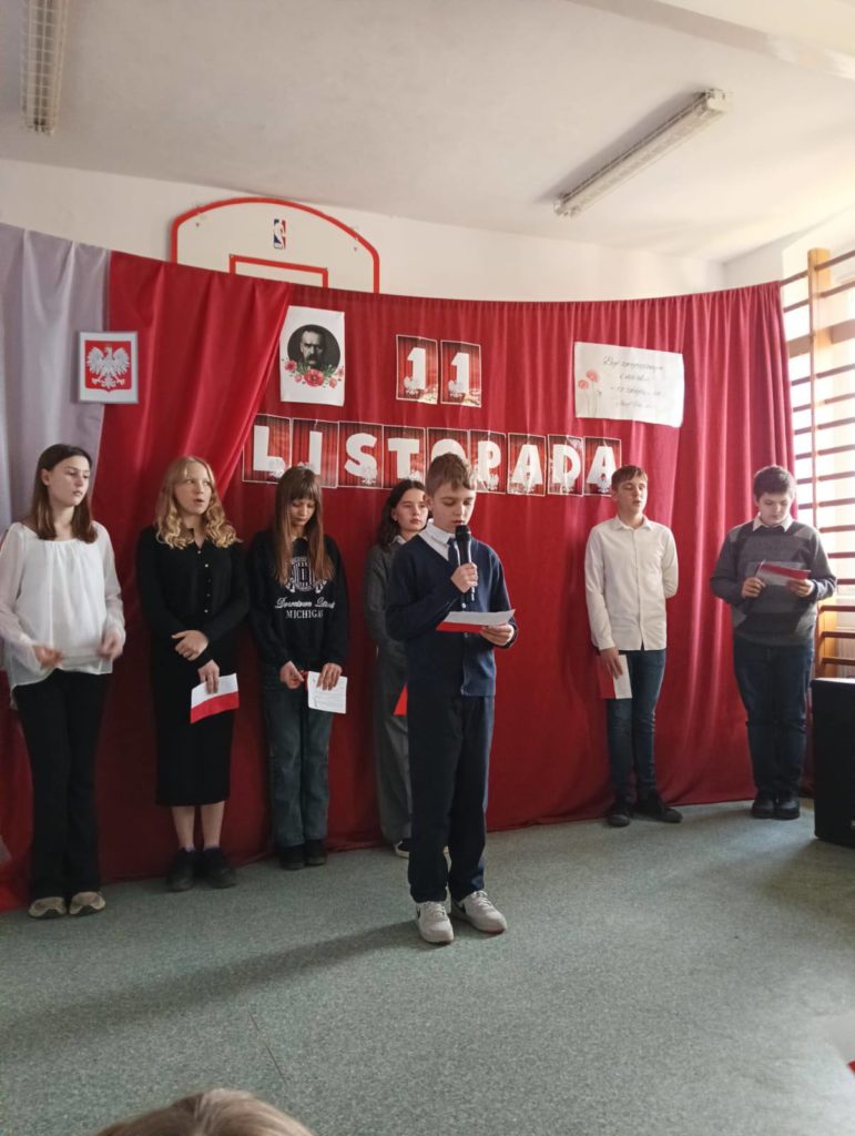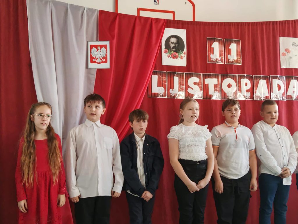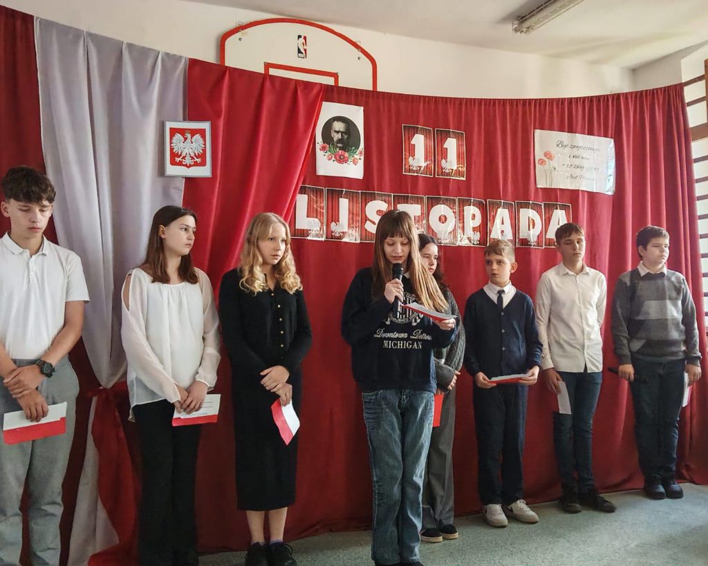 Uczniowie przypomnieli najważniejsze wydarzenia z historii naszego kraju, prowadzące do tego wyjątkowego dnia – 11 listopada 1918 roku, kiedy po 123 latach zaborów Polska wróciła na mapę Europy.