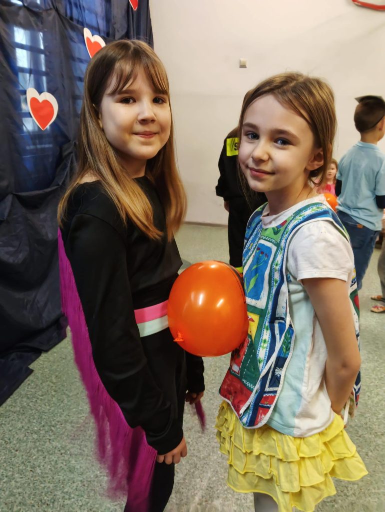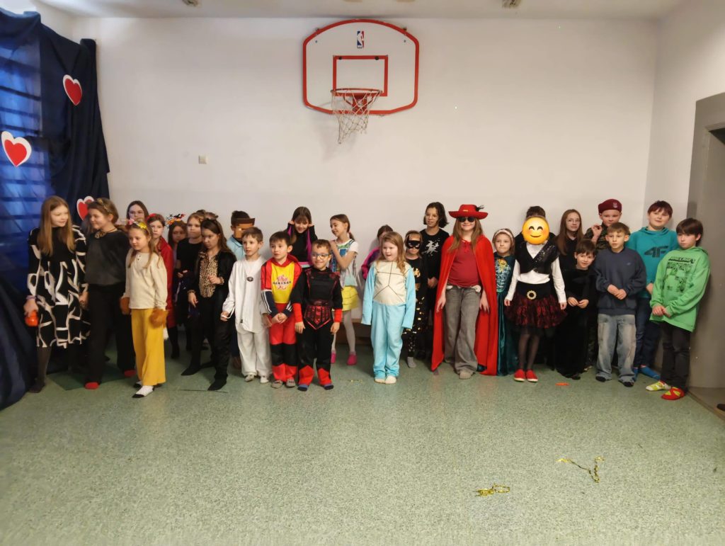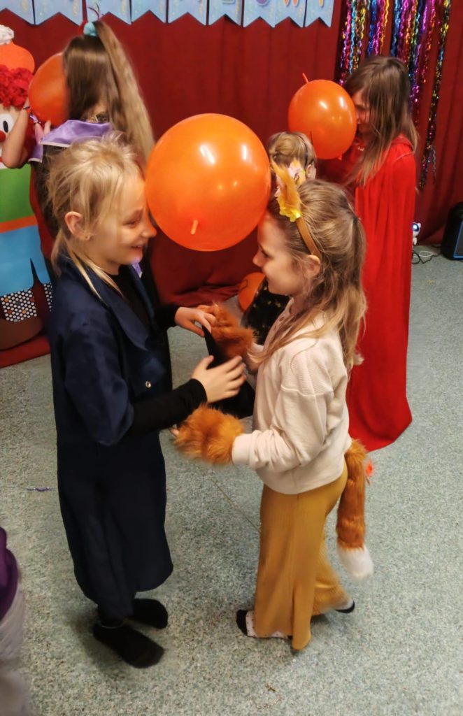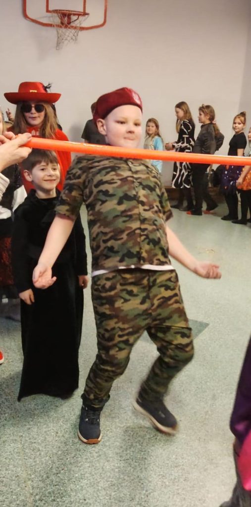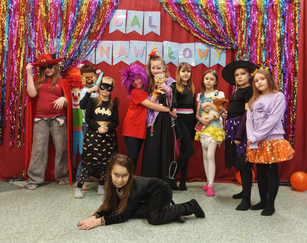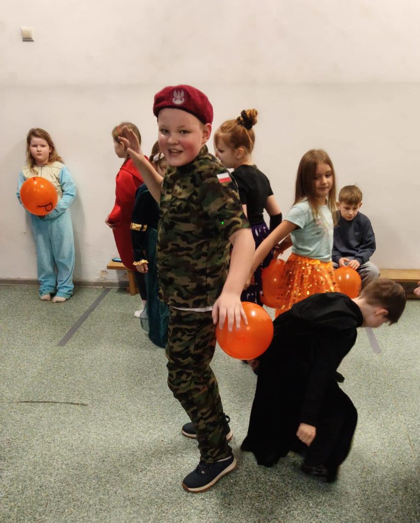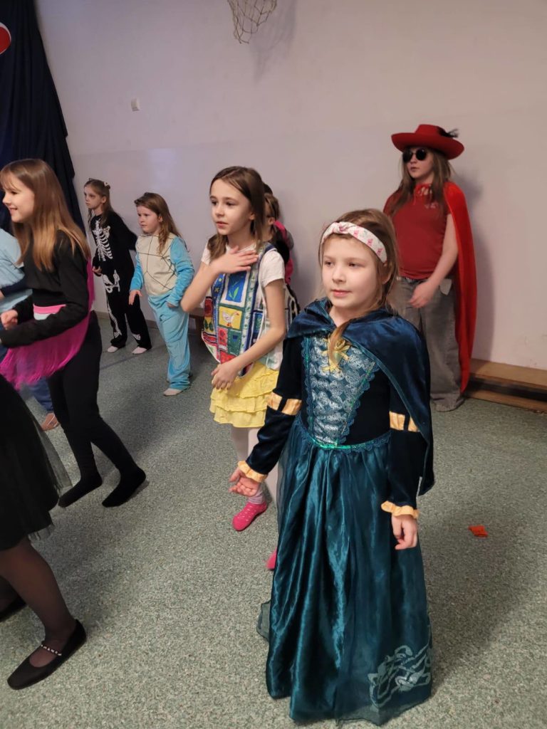 Sala wypełniła się kolorowymi strojami, uśmiechami i świetną energią. Były tańce przy wesołej muzyce, kreatywne przebrania oraz mnóstwo emocjonujących konkurencji, w których każdy mógł się wykazać. Zabawom nie było końca!!