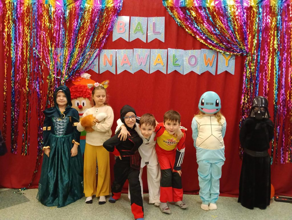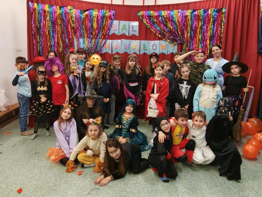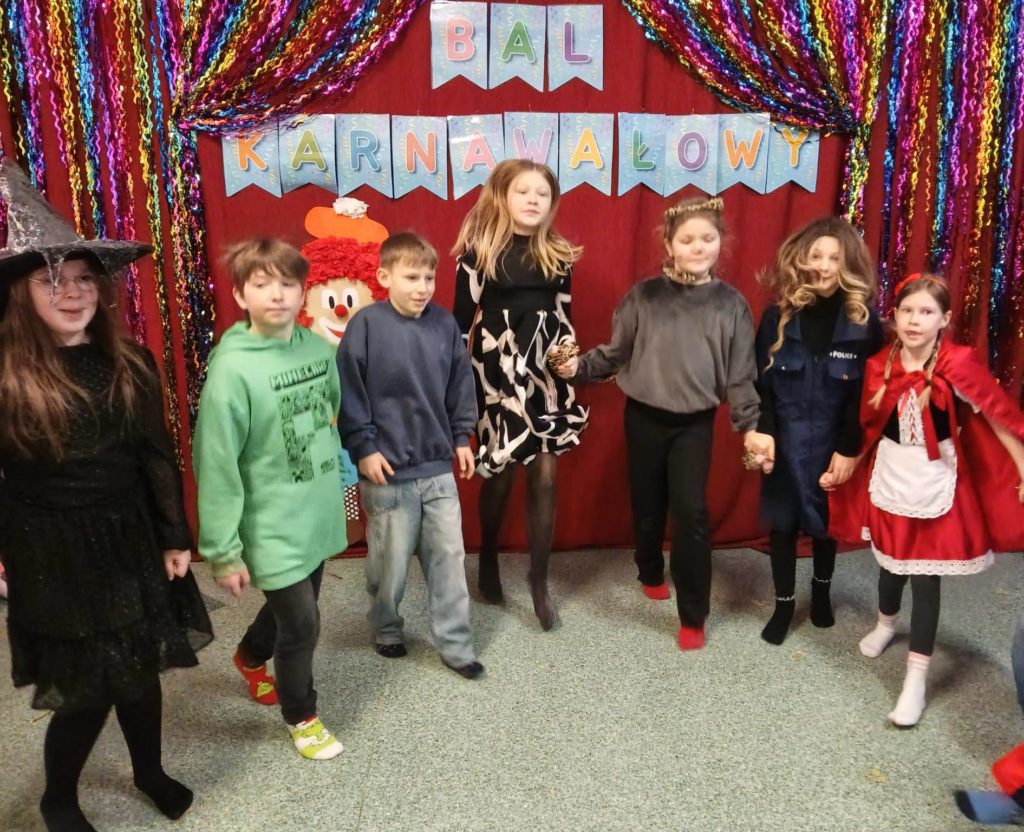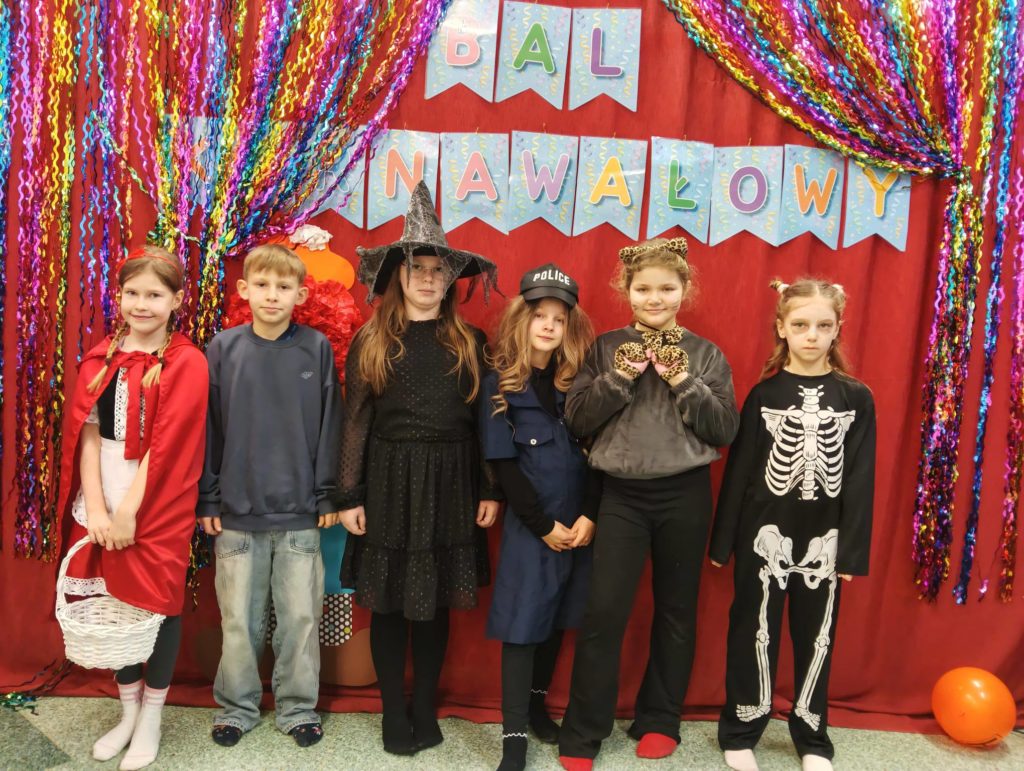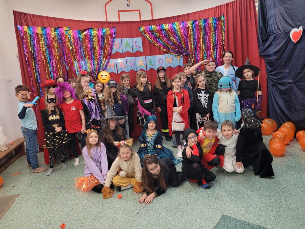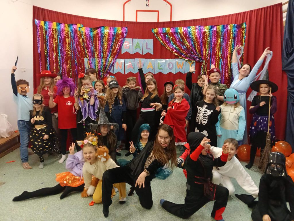 Sala wypełniła się kolorowymi strojami, uśmiechami i świetną energią. Były tańce przy wesołej muzyce, kreatywne przebrania oraz mnóstwo emocjonujących konkurencji, w których każdy mógł się wykazać. Zabawom nie było końca!!