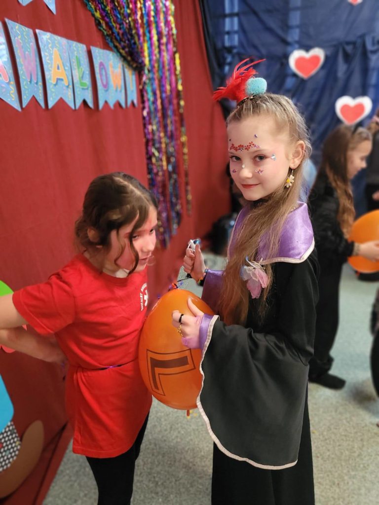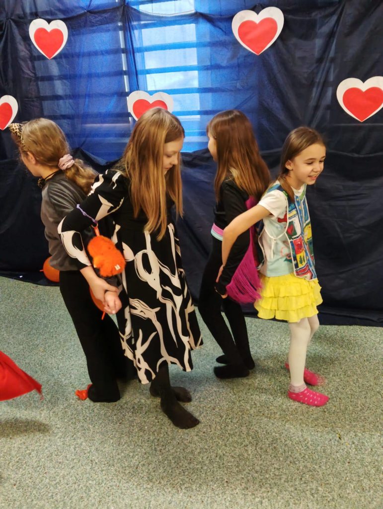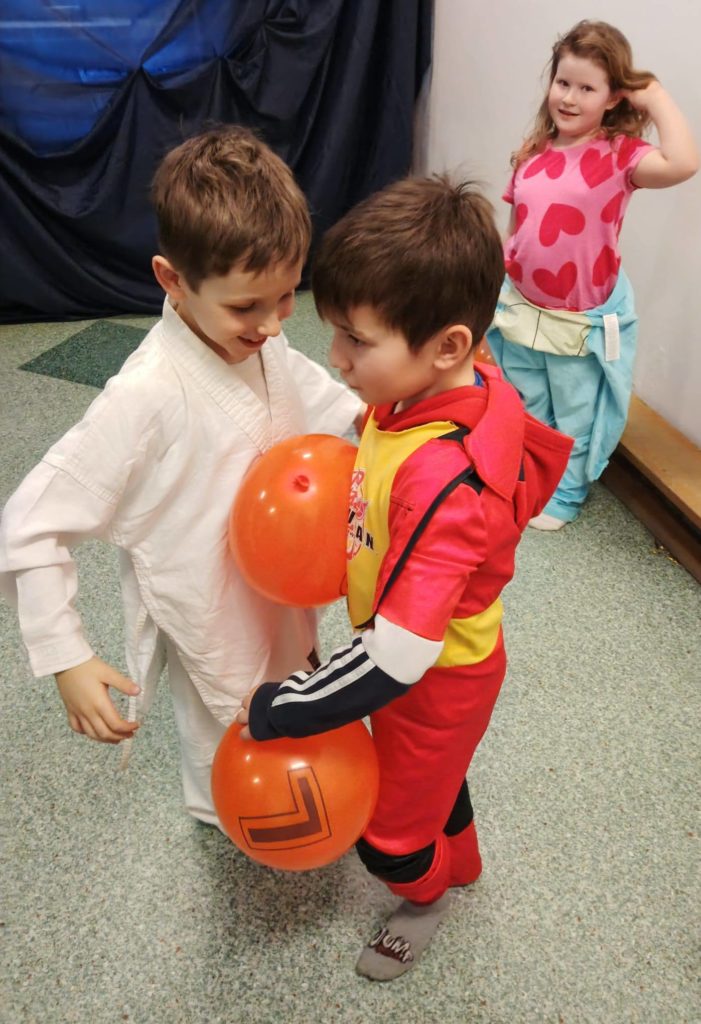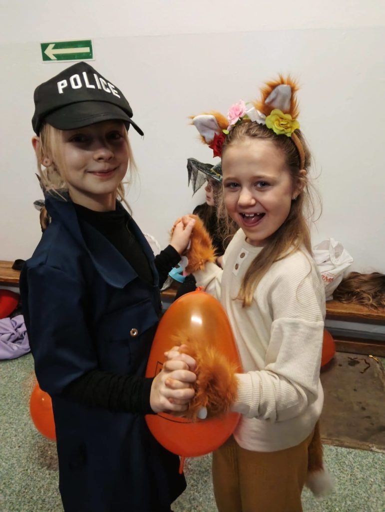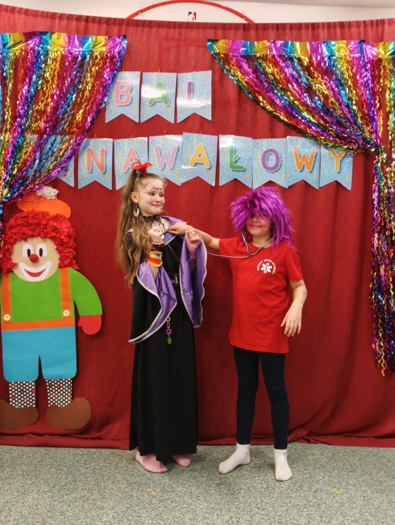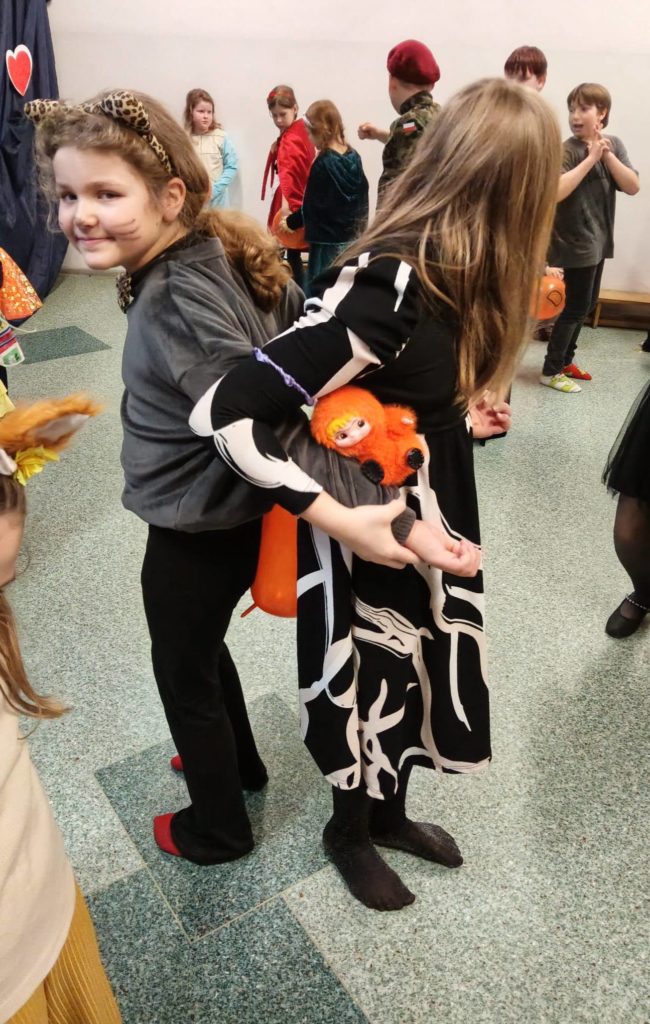 Sala wypełniła się kolorowymi strojami, uśmiechami i świetną energią. Były tańce przy wesołej muzyce, kreatywne przebrania oraz mnóstwo emocjonujących konkurencji, w których każdy mógł się wykazać. Zabawom nie było końca!!