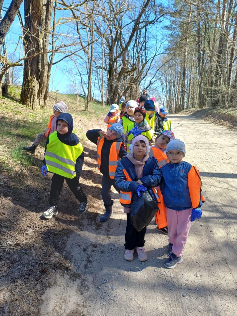 Z tej okazji nasze przedszkolaki wybrały się na sprzątanie leśnych ścieżek. Wyposażeni w worki i rękawiczki, z wielkim zapałem ratowaliśmy przyrodę w naszej okolicy.