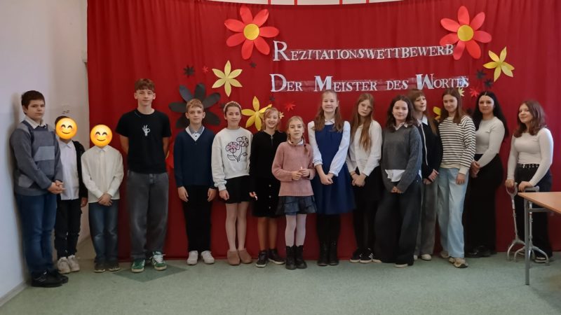 „Der Meister des Wortes” za nami! Za nami szkolny konkurs recytatorski z języka niemieckiego: Gratulujemy wszystkim uczestnikom oraz laureatom: Łukasz kl. VIII Iga kl. VI Szymon kl. VII Wyróżnienia: Magda kl. V Emilia kl. V Krystian kl. V Wszyscy wyżej wymienieni uczniowie będą reprezentować naszą szkołę w konkursie międzyszkolnym.